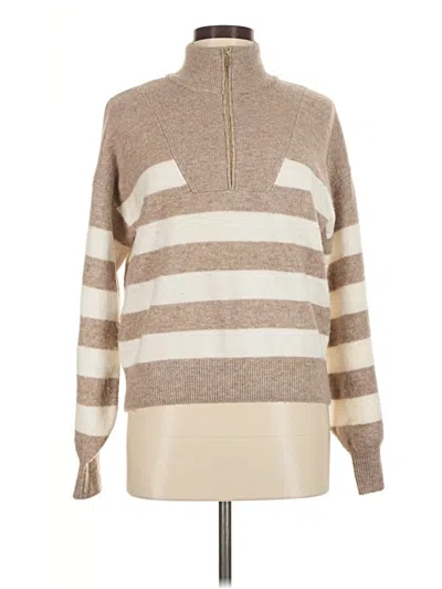 Draper James Pullover Sweater, Size: Medium. Item Details: Tan, Stripes Pattern, Collared Neckline, Long Sleeve, Zippers, Women's Tops, Polyester/Acrylic/Wool