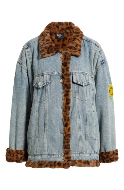 Take denim day to a casually luxe destination with a bleach-baked denim jacket lined in plush faux fur. Front button closure Spread collar Chest button-flap patch pockets; side-seam pockets 100% cotton with 100% acrylic faux fur contrast Dry clean Imported