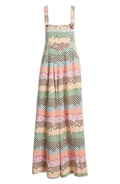 A carnival of colors animates roomy overalls designed with superwide legs and cut from nonstretch denim. Square neck Adjustable button straps 100% cotton Hand wash, dry flat Imported