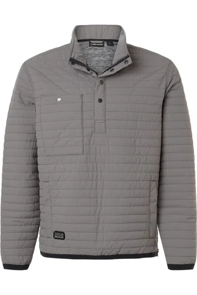 3.5 oz./yd, 100% polyester 2-layer4-way stretch dewspo bonded to waterproof membrane. 1 oz./yd feather touch polyfill insulation. 95/5 spandex melange jersey lining. 1" channel quilt. Storm Shield level 1 for light rain. Teflon EcoElite C0 durable water-repellant. Stretch binding at cuffs and waistband. Dual closure, four-snap placket and heavy-duty zipper with easy grab pull. On-seam side zip opening at wearers left hip for easy on and off. Exterior chest and hand pockets with snap closures. DRI DUCK logo on right hip.