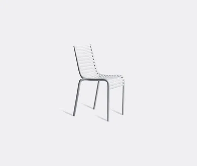 Following its established tradition of collaborating with esteemed designers and architects, Driade presents Philippe Starck's take on the classic slatted chair. The expression is elegant and experimental. The horizontal elements that form the seat and backrest take on a distinctive chiaroscuro effect, which, in an unexpected twist, continue below the seat to support the internal curvature of the knee. Intended for use in- and outdoor, the 'Pip-E' chair in white encapsulates design ingenuity and timeless appeal. 'Pip-E' is available with arms for combining in table set-ups.