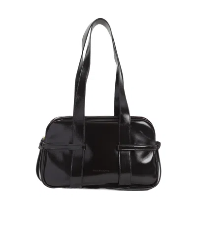 DRIES VAN NOTEN Ruby Red Leather Medium Bowling Shoulder Bag In Black