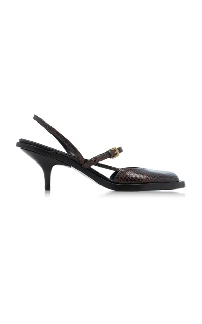 DRIES VAN NOTEN Slingback Python-effect Leather Pumps In Brown