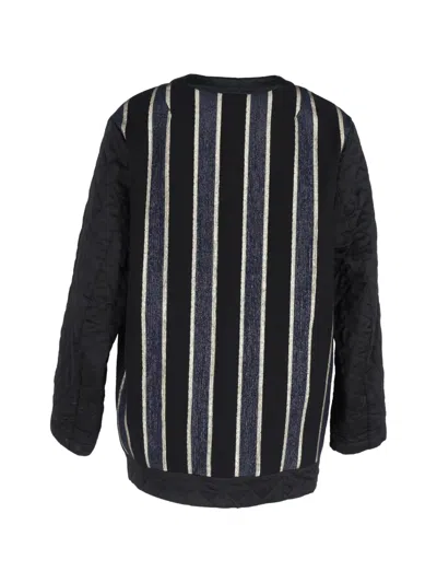 Pre-owned Stripe-pattern Quilted-pattern Coat In Black