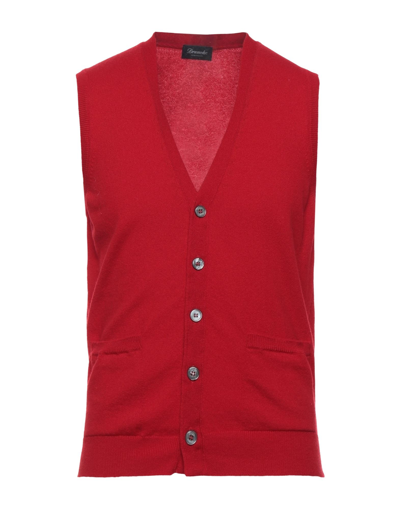 knitted, lightweight knit, no appliqués, solid color, v-neck, sleeveless, button closing, multipockets , Color: Red , Size: 34
