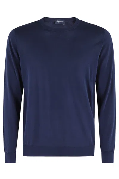DRUMOHR Smooth Knit Blue Sweater With Ribbed Cuffs