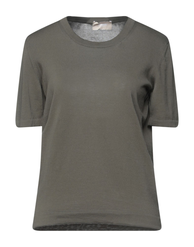 knitted, lightweight knit, no appliqués, solid color, round collar, short sleeves, no pockets , Color: Military green , Size: L