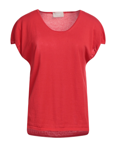 knitted, lightweight knit, no appliqués, solid color, round collar, short sleeves, no pockets , Color: Red , Size: L