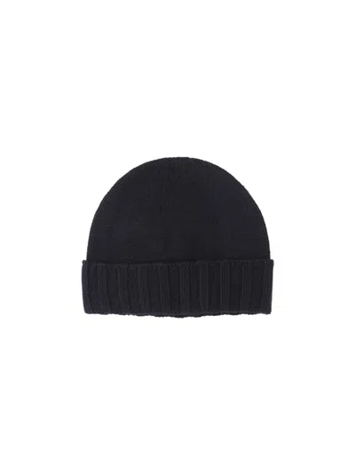 Drumohr Black Beanie in beige cashmere, ribbed knit, pull-on style, with a round crown and cuff.