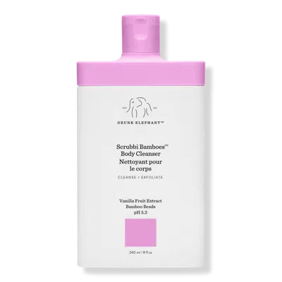SCRUBBI BAMBOES BODY CLEANSER 8.0OZ. Benefits: Cleanses and exfoliates with ultra-mild surfactants, moisturizing plant oils, and ultrafine biodegradable bamboo beads. Softens, hydrates, and soothes with a mild, naturally sweet vanilla scent. Rinses off easily and leaves skin incredibly soft and smooth. Formulated without the Suspicious 6 - the six ingredients Drunk Elephant believes are at the root of almost every skin issue (Essential oils, Silicones, Chemical sunscreens, SLS, Fragrances + dyes, and Drying alcohols). Key Ingredients: Vanilla Planifolia Fruit Extract: Derived from the seeds of the vanilla plant. Vanilla fruit is used for its powerful concentration of free-radical-fighting polyphenols as well as its soothing benefits. The seeds of the vanilla plant have a mild, naturally sweet scent. Bamboo Powder: Ultrafine powder derived from biodegradable bamboo stems. Used as a mild physical exfoliator. Ultra-Mild Surfactant Blend: A stack of gentle cleansing agents, including coconut-based surfactants rich in fatty acids, work together to create a creamy foam that effectively lifts dirt and other substances from skin without stripping or drying. Research Results: In a clinical study with 31 participants- Scrubbi Bamboes Body Cleanser was clinically proven to improve hydration..
