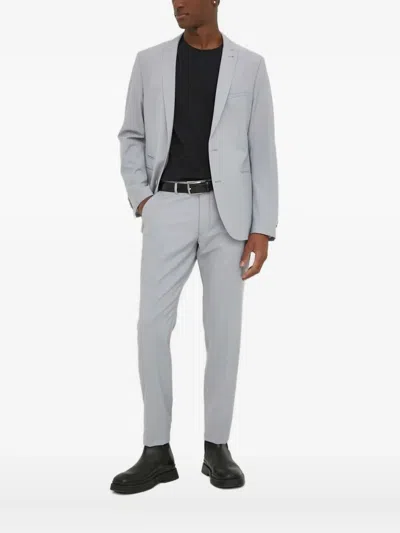 grey single-button fastening notched lapel flap pockets cuff detail plain weave