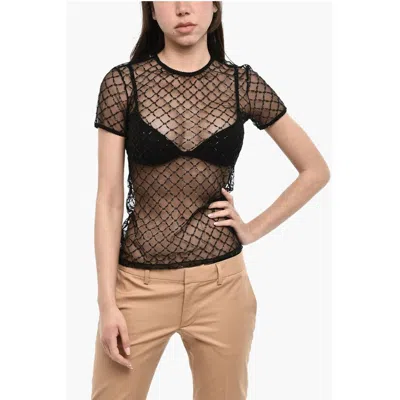 DSQUARED2 Sequined Sheer Top In Black