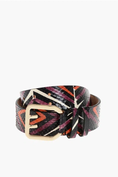 DSQUARED2 Abstract Patterned Snake Leather Belt 40mm In Multi