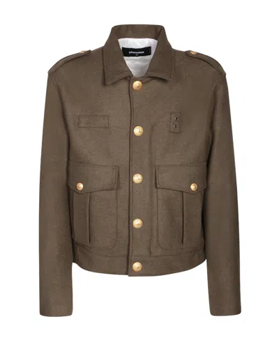 DSQUARED2 Army Green Wool-blend Jacket In Brown