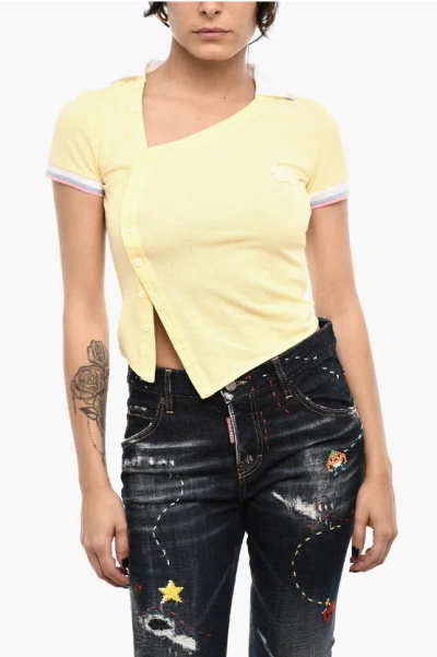DSQUARED2 Asymmetrical Cut Top With Polo Neck In Yellow