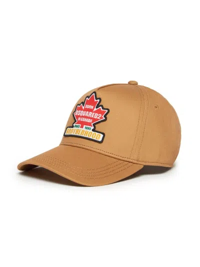 DSQUARED2 Kids' Baseball Cap With Maple Leaf Patch In Beige