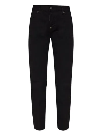 black concealed fly and button fastening classic five pockets belt loops logo patch to the rear
