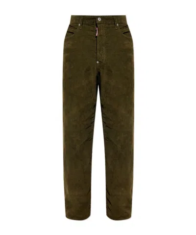 olive green corduroy button fly five-pocket styling straight leg mid-rise waist