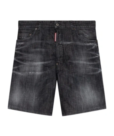 DSQUARED2 Straight Denim Bermuda Shorts In Black