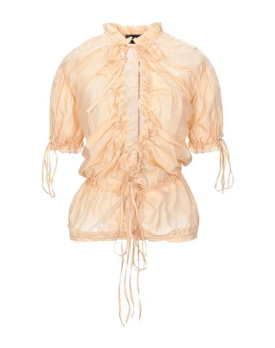 DSQUARED2 Blouses. crepe, laces, ruffles, basic solid color, front closure, self-tie wrap closure, short sleeves, deep neckline, no pockets. 61% Polyester, 39% Silk