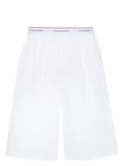 white cotton blend elasticated logo waistband eyelet vents knee-length Just a reminder that this piece must be tried on over your own garments.
