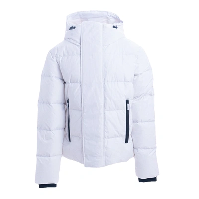 DSQUARED2 jacket, white, non-removable and adjustable hood with drawstring, zip and tear fastening, two side pockets, internal logo patch, adjustable hem with drawstring, inside pocket. Composition: Tessuto: 100% Poliestere; Fodera: 100% Poliammide; Imbottitura: 80% Piumino Anatra, 20% Piuma Danatra