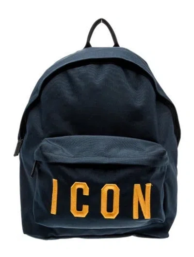 Dsquared² Backpack Blue Canvas Graphic Print Tonal Hardware Flat Handle & Dual Adjustable Shoulder Straps Single Exterior Pocket Canvas Lining & Single Interior Pocket Zip Closure at Top | Dsquared² Canvas Backpack in Blue