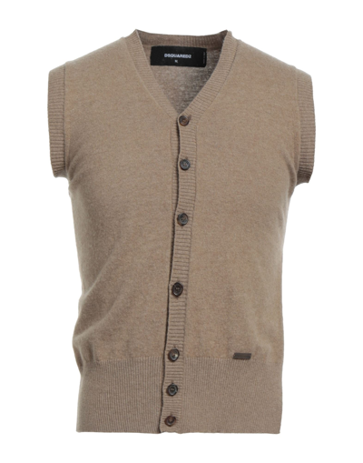 DSQUARED2 Cardigans. knitted, contrasting applications, brand logo, lightweight knit, v-neck, solid color, sleeveless, front closure, button closing, no pockets, large sized. 100% Wool