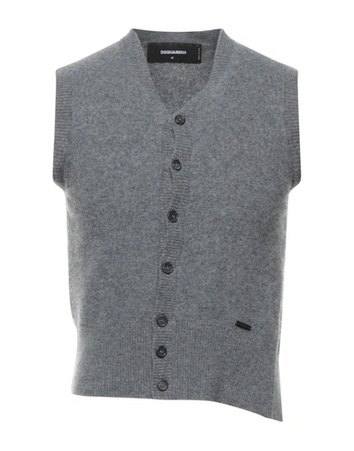 DSQUARED2 Cardigans. knitted, contrasting applications, brand logo, lightweight knit, v-neck, solid color, sleeveless, front closure, button closing, no pockets, large sized. 100% Wool