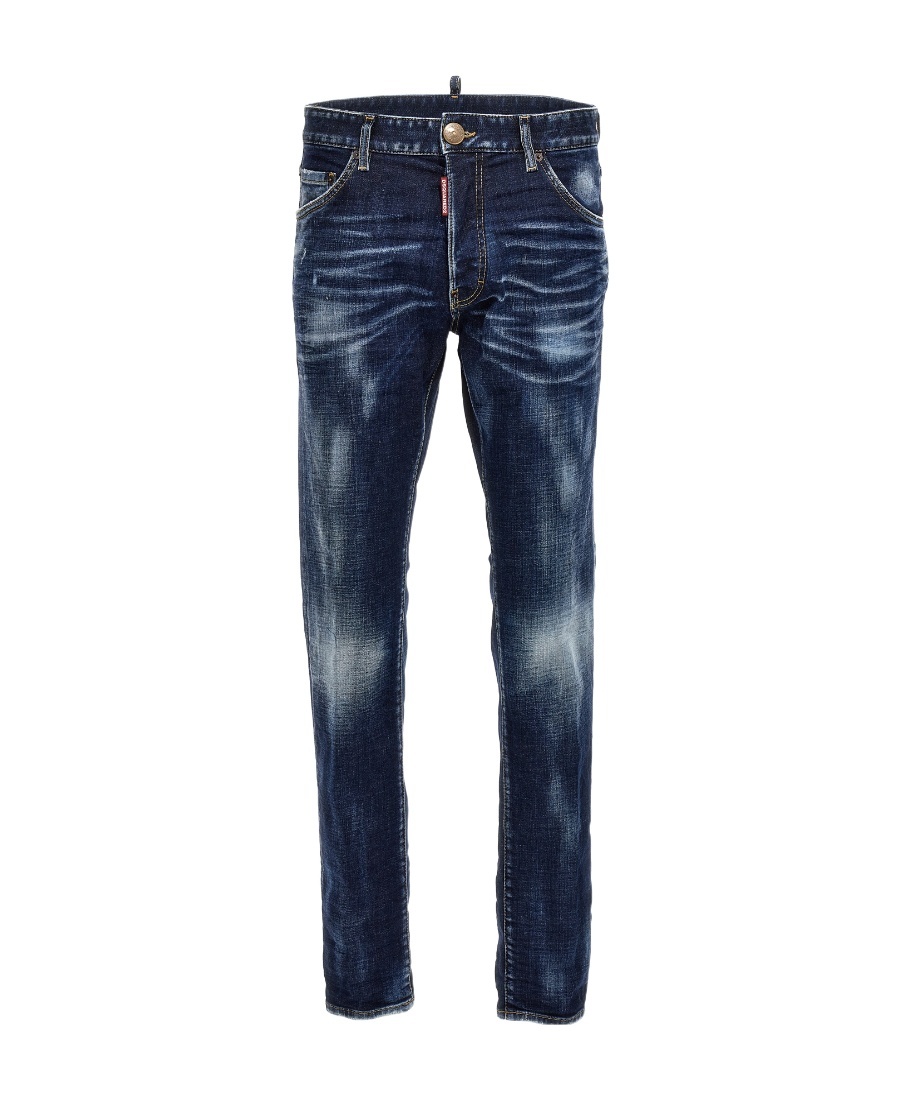 COTTON COOL GUY JEANS FROM DSQUARED2, FIVE-POCKET STRAIGHT STYLE, FRONT BUTTON CLOSURE, BELT LOOPS WAISTBAND, CONTRASTING EMBROIDERED ICONIC LOGO FABRIC PATCH APPLIED AT BACK, WASHED OUT VINTAGE EFFECT PATTERN.RTW IT