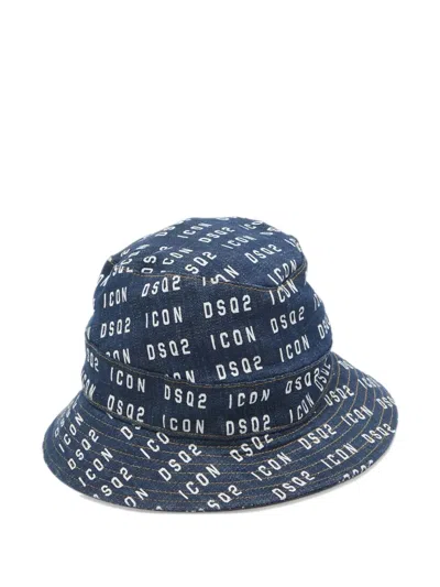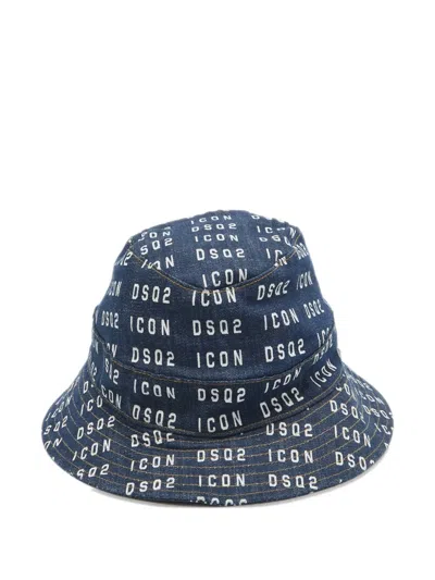 blue cotton pull-on style all-over logo print dropped wide brim Condition: GOOD. This previously owned and used item is in good condition with minimal signs of use. This may include fading of material or plating and scratches.
