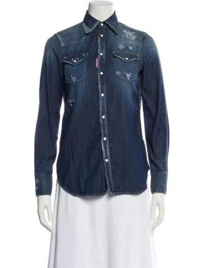 Dsquared² Denim Jacket Blue Pointed Collar Flap Pockets & Snap Closure Fit: Jackets by Dsquared² typically fit true to size. | Dsquared² Denim Jacket in Blue, Women's US2, IT38 | XS
