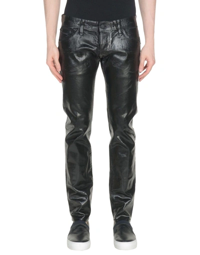 denim, coated effect, logo, solid color, colored wash, mid rise, front closure, button closing, multipockets, stretch, straight-leg pants, large sized , Color: Black , Size: 40