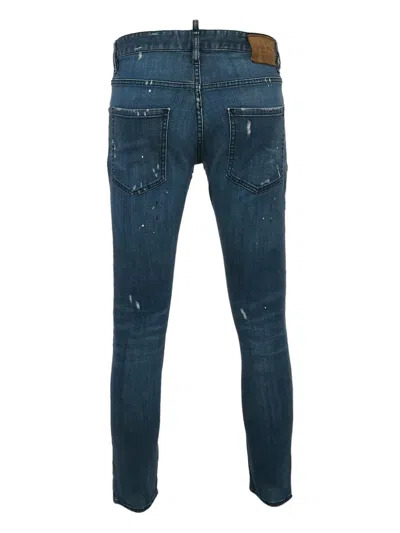blue denim paint splatter detail distressed effect zipper fly Condition: GOOD. This previously owned and used item is in good condition with minimal signs of use. This may include fading of material or plating and scratches.