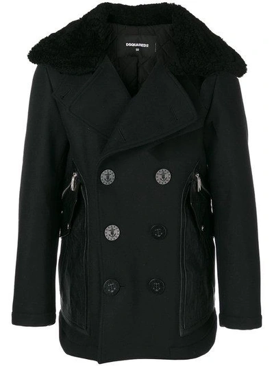 DSQUARED2 Double Breasted Coat In Black