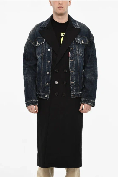 DSQUARED2 Double Layer Double Breasted Coat In Blue