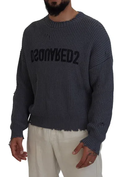 Pre-owned Dsquared² Gray Men Tattered Knitted Pullover Men's Sweater ()