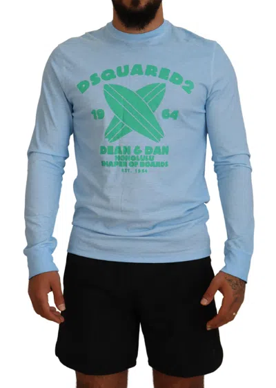 Pre-owned Dsquared² Light Blue Printed Long Sleeves Men Men's Sweater ()