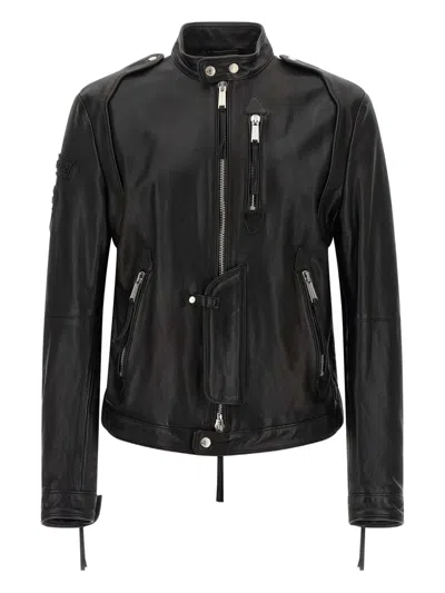 DSQUARED2 Ducati X D2 Black Jacket With Mandarin Collar And Logo Embossed On The Back In Leather Man