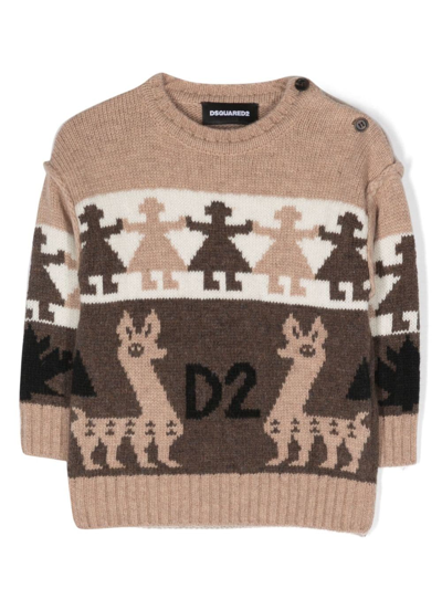 DSQUARED2 Babies' Gestrickter Intarsien-pullover In Neutrals