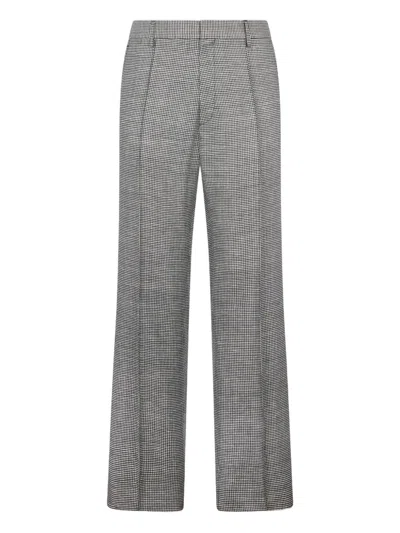 grey pied de poule pattern button fastening belt loops rear welt pockets