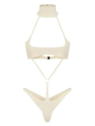 DSQUARED2 Harness Choker Bodysuit In Neutrals