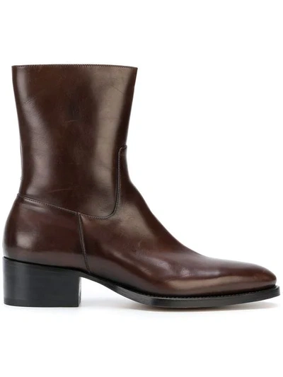 'Born in Canada, living in London, made in Italy' is DSQUARED2's mantra and these pinpoints of origin are once again reflected in the Caten-twin designers’ AW18 collection. Sculpted from brown leather, these high ankle boots from DSQUARED2 feature a pointed toe, an ankle length, a side zip fastening and a chunky low block heel.