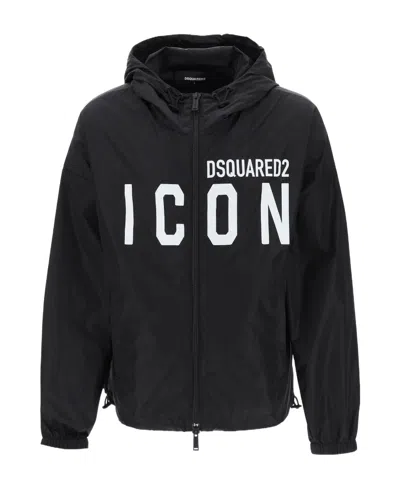 DSQUARED2 Icon-print Hooded Jacket In Black