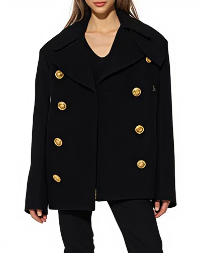 Elegant double-breasted caban jacket Dsquared2 for a touch of class to your wardrobe. Made of a sophisticated blend of black virgin wool, it features a lance rever and long sleeves. The double-breasted button game completes the look with a sophisticated finish.Composition:Exterior; 100% calfskin, virgin wool 79%, polyamide 20%, elastane 1%Lining; 100% polyester, 100% cotton