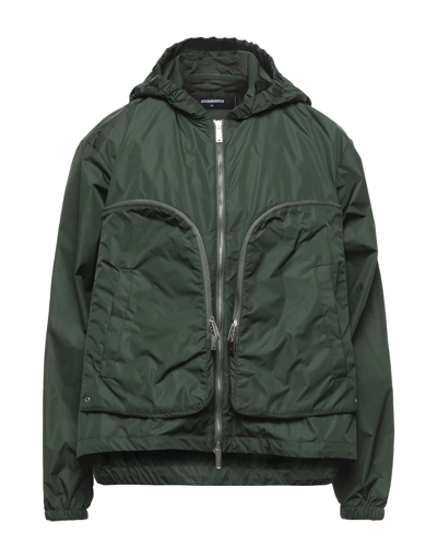 techno fabric, no appliqués, solid color, hooded collar, single-breasted , long sleeves, unlined, zipper closure, multipockets , Color: Green , Size: 36