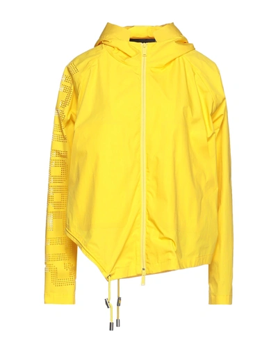 techno fabric, openwork, brand logo, solid color, single-breasted , hooded collar, long sleeves, zipper closure, multipockets, unlined , Color: Yellow , Size: 6