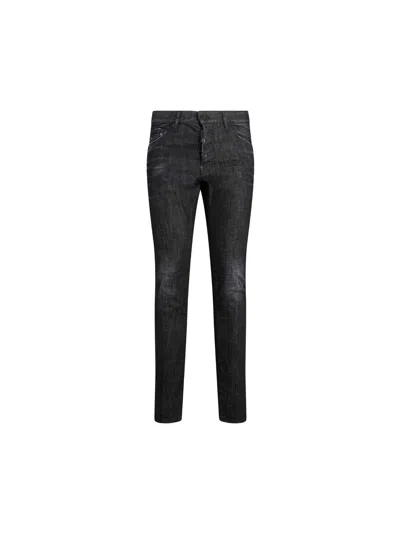Cotton jeans by dsquared2, straight five-pocket design, front button fastening, belt loops for waistband, iconic leather patch with brand signature pressure print applied to the back. Composition: 98% % Cotton, 2% % ElastaneComposition: 98% Co, 2% Ea