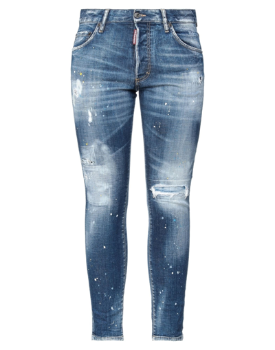 denim, faded, torn fabric, brand logo, solid color, medium wash, high waisted, tapered leg, regular fit, button closing, five pockets, stretch , Color: Blue , Size: 2