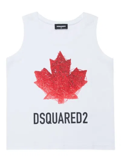DSQUARED2 Kids' Leaf-graphic Sleeveless T-shirt In White